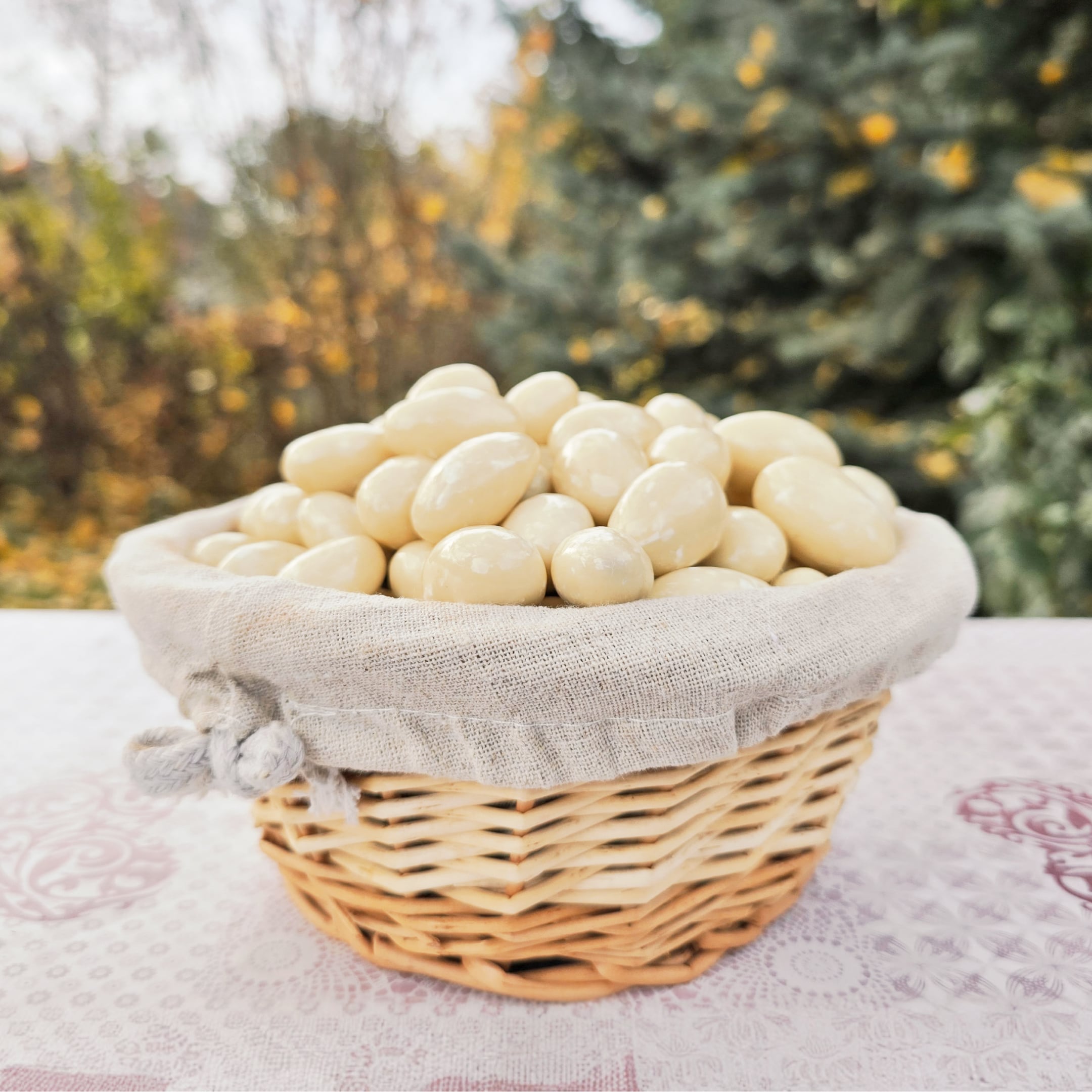 Chrumkavé mandle obalené v jemnej bielej čokoláde sú luxusnou pochúťkou. Spojenie mandlí a sladkej čokolády vytvára neodolateľnú harmóniu.