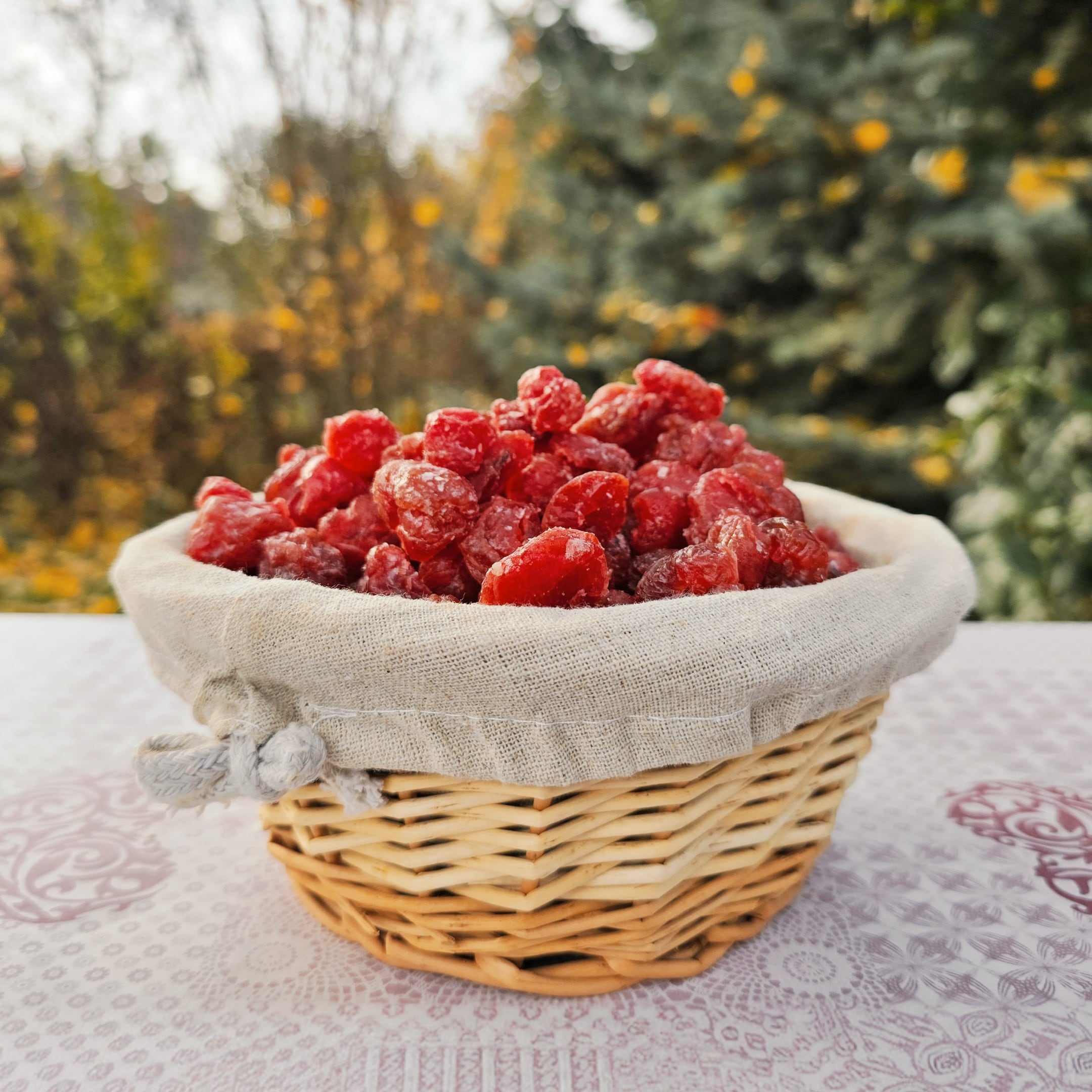 Sušené čerešne majú intenzívnu sladko‑kyslú chuť a sú bohaté na antioxidanty a vitamíny. Výborne sa hodia na pečenie, do müsli alebo ako zdravá maškrta.