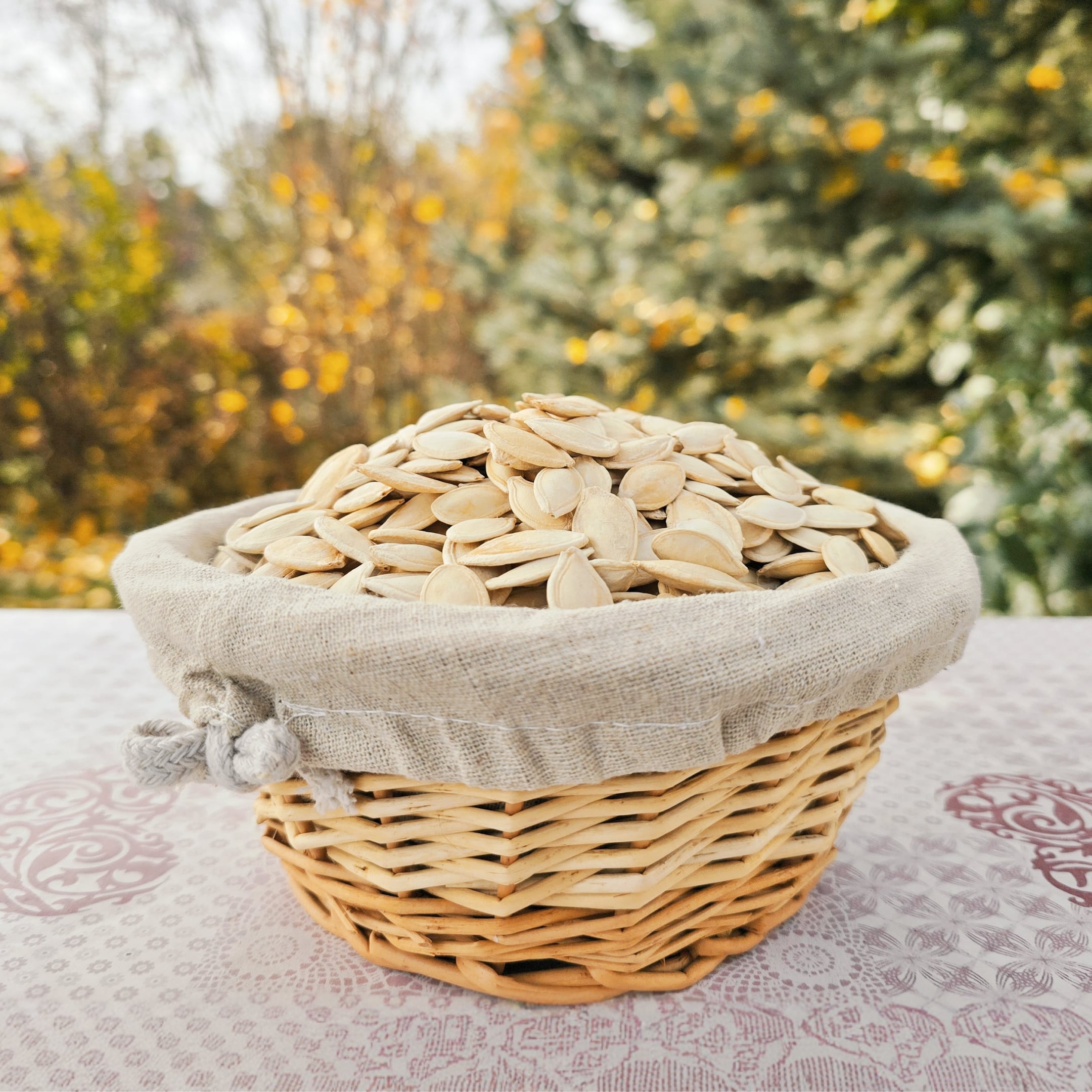 Chrumkavé tekvicové semienka v šupke s jemným posypom soli. Bohaté na živiny a minerály, výborne sa hodia ako maškrta alebo do šalátov.